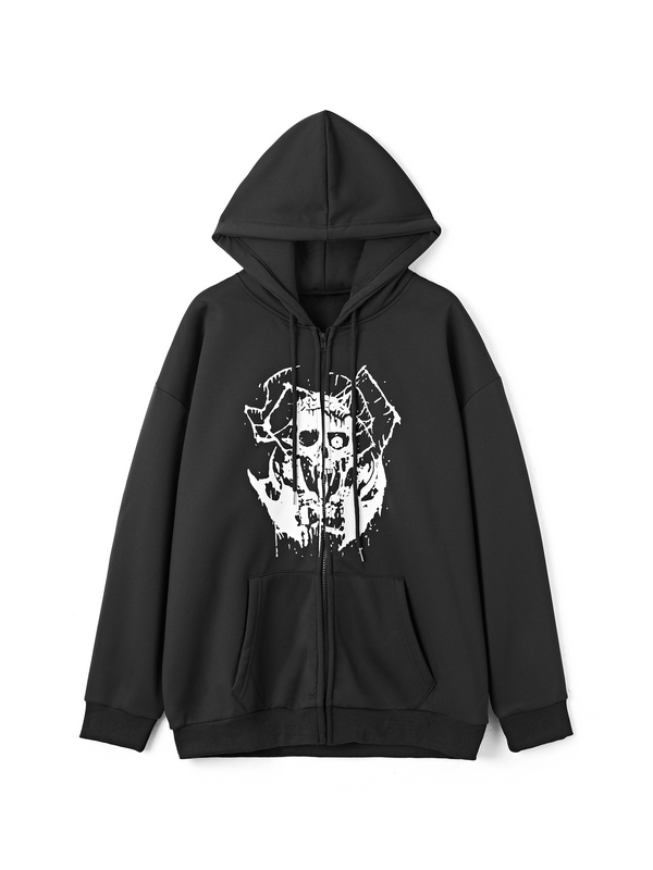Sudadera con capucha extragrande con estampado de calavera gótica para hombre