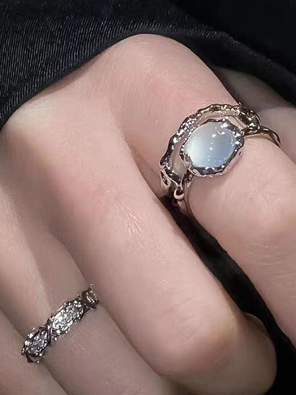 2 piezas anillo de puño con diamante y piedra lunar Fairycore