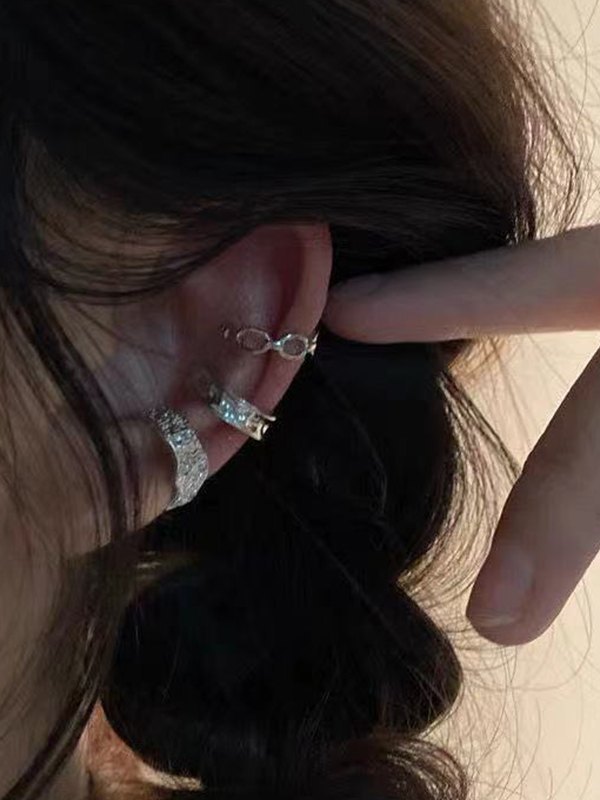 Juego de 3 manguitos cóncavos de plata para orejas.