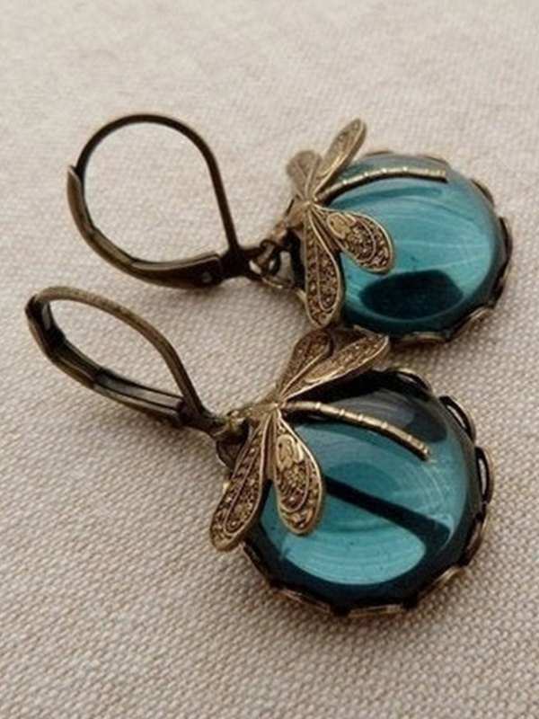 Pendientes de aro con colgante de piedra de libélula vintage