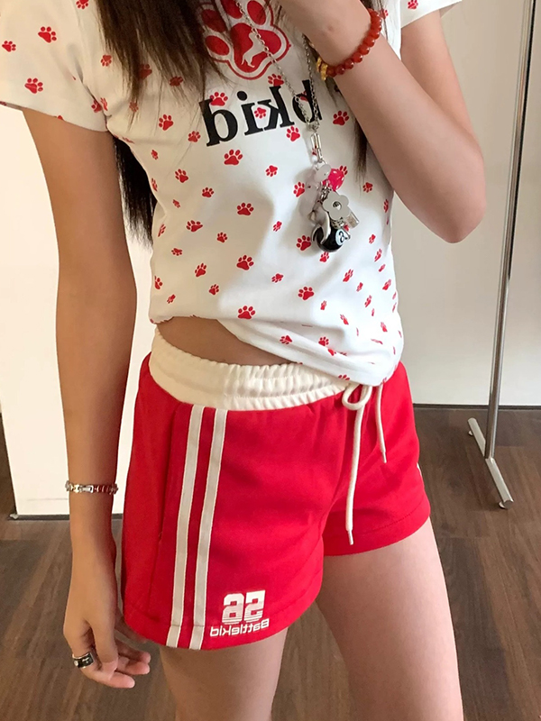 Pantalones cortos casuales con cordón y bloques de color para chicas atractivas