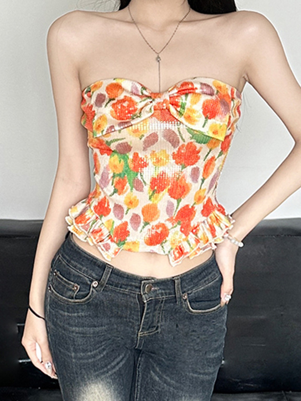 Top bandeau con estampado de tulipanes para niña
