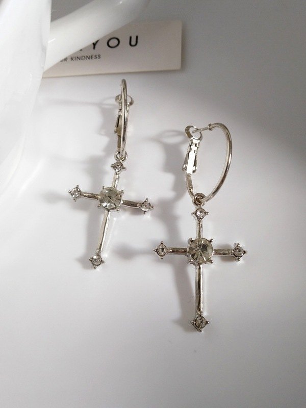 Pendientes de aro con cruz de diamantes de imitación