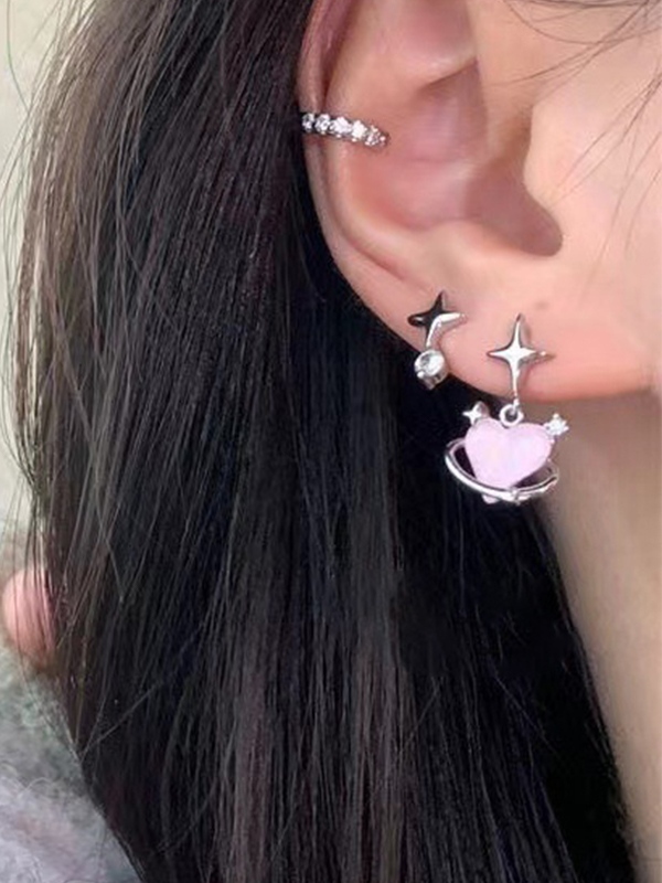 6 uds corazón estrella perla diamante decoración Stud pendiente