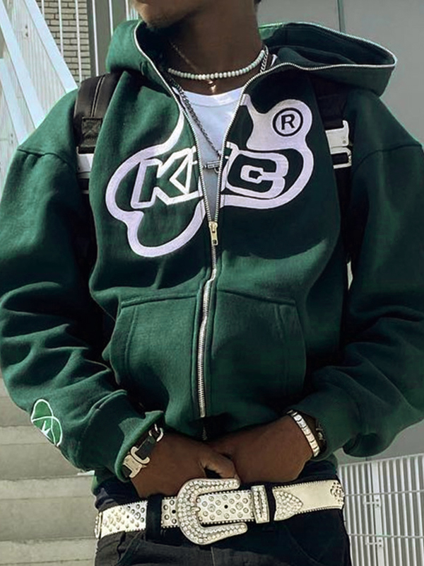 Sudadera con capucha extragrande con cremallera y estampado para hombre
