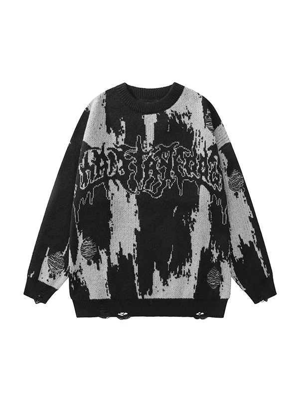 Suéter extragrande con estampado de letras cruzadas vintage para hombre