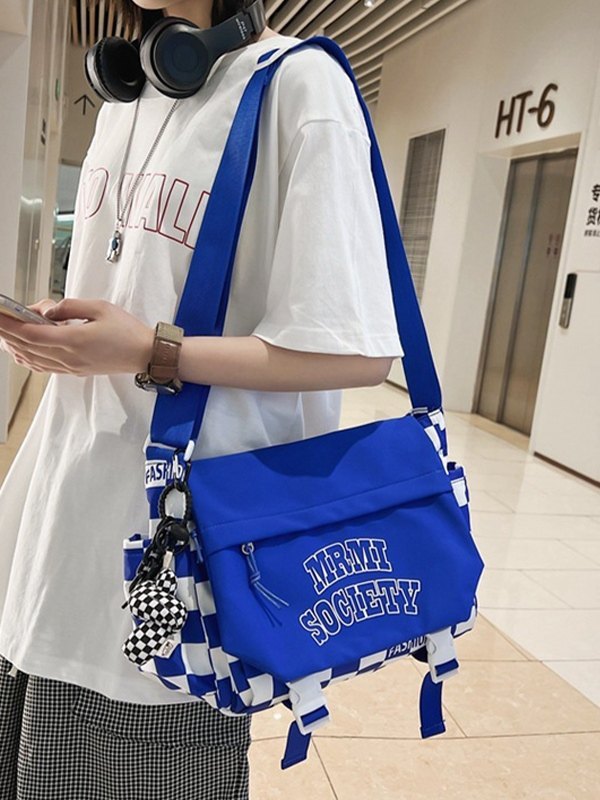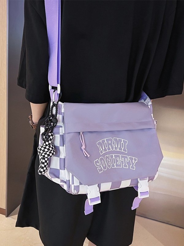 Bolso bandolera de nailon a cuadros con correa de hebilla