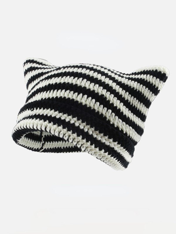 Gorro Beanie con diseño de orejas a rayas en contraste