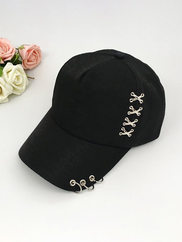 Gorra de béisbol negra con adornos metálicos