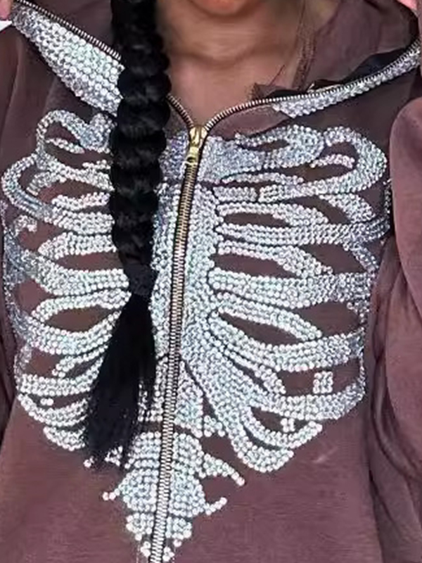 Sudadera con capucha con estampado de diamantes de imitación prensados con calor