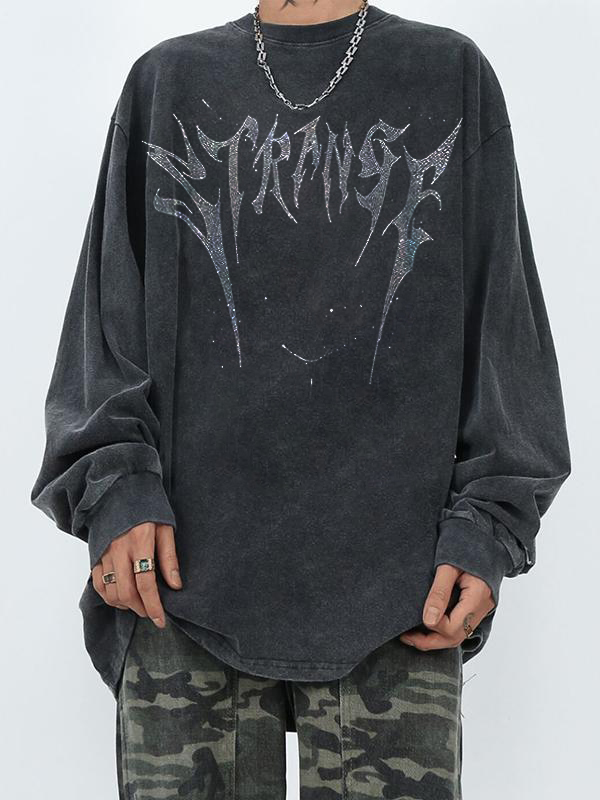 Camiseta extragrande de manga larga con diamantes para hombre