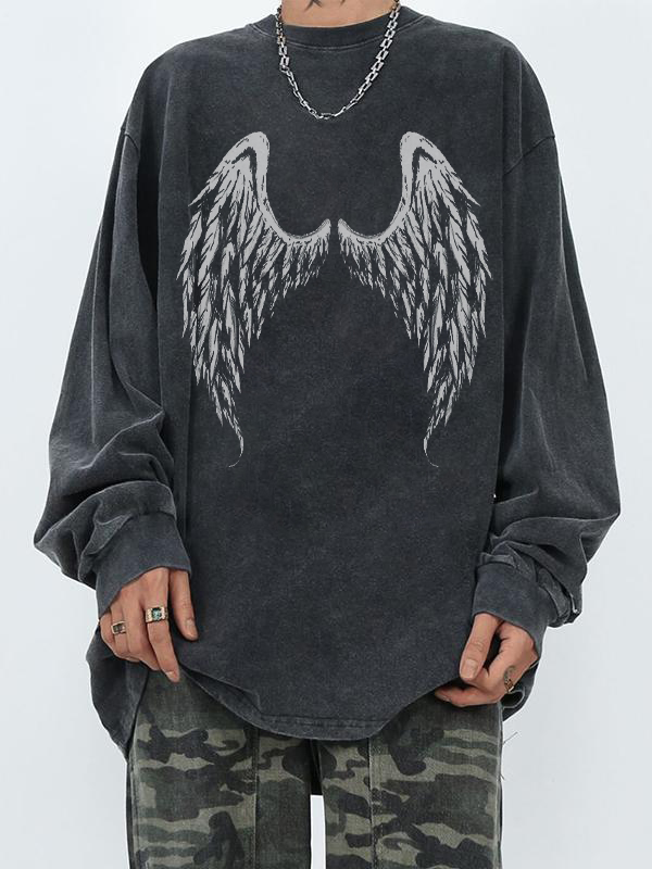 Camiseta extragrande de manga larga con estampado de alas para hombre