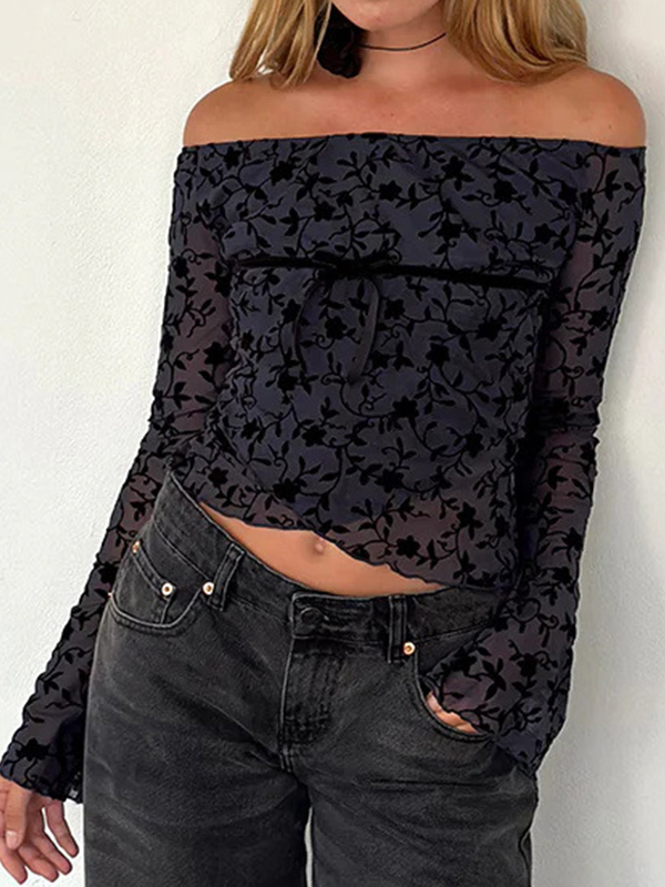 Camiseta de manga larga con hombros descubiertos